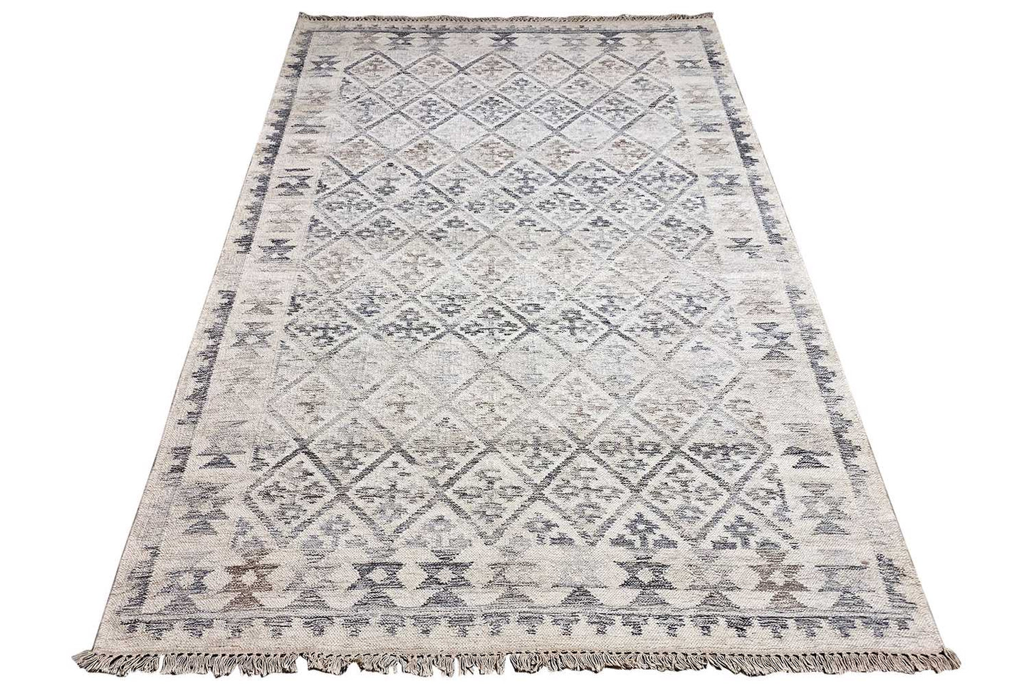 This kilim originates from India. Indian kilim rugs can feature both modern and traditional design elements. Cotton is mainly used as the material. The rugs are woven flat, which gives them their unique appearance.