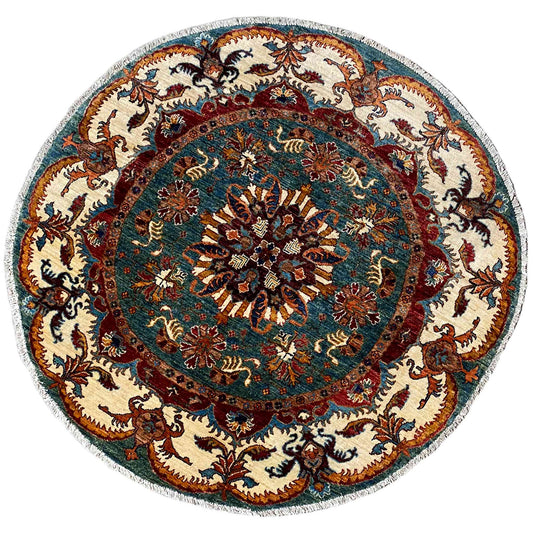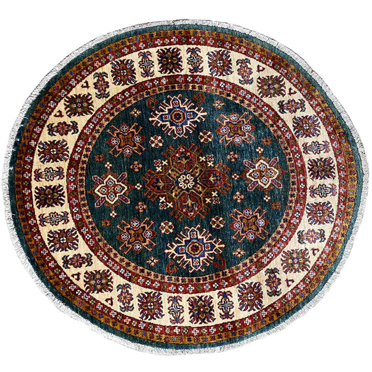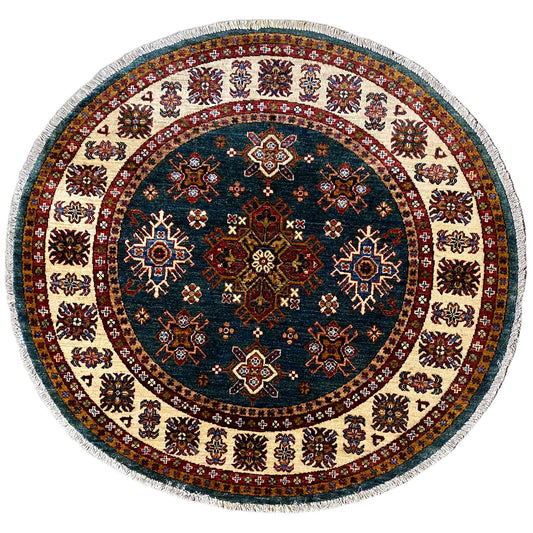 Turquoise & Beige Round Kazak Rug, 204x204 cm