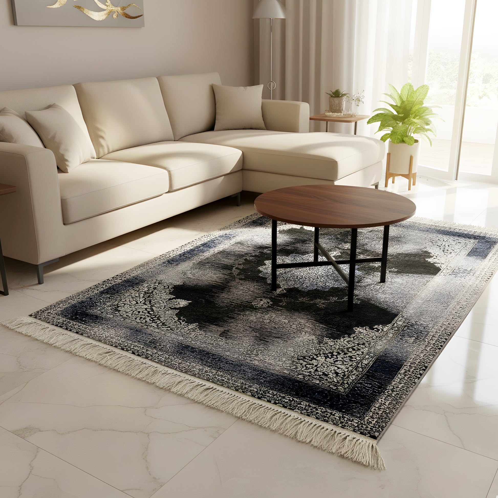 The machine-woven carpet in elegant Oriental style brings a touch of Amsterdam flair to any home with its detailed medallion pattern in black, gray, and blue. Made from high-quality polypropylene, it is easy to care for, durable, and ideal for living rooms, dining rooms, or bedrooms. With its size of 160x230 cm, it sets stylish accents and combines classic elegance with modern functionality.