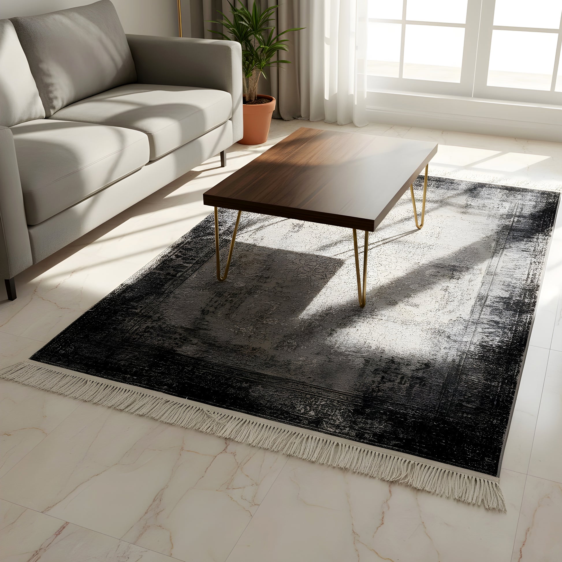 An elegant classic with a modern touch. The "Emilia" rug (160x230cm) combines the timeless medallion pattern with delicate ornaments in a stylish color scheme of black, gray, and beige. Thanks to its trendy distressed look and being made from durable, machine-woven 100% polypropylene, this rug is not only an eye-catcher in oriental style but also extremely easy to care for and long-lasting. A perfect decorative element that harmoniously combines elegance and everyday practicality.