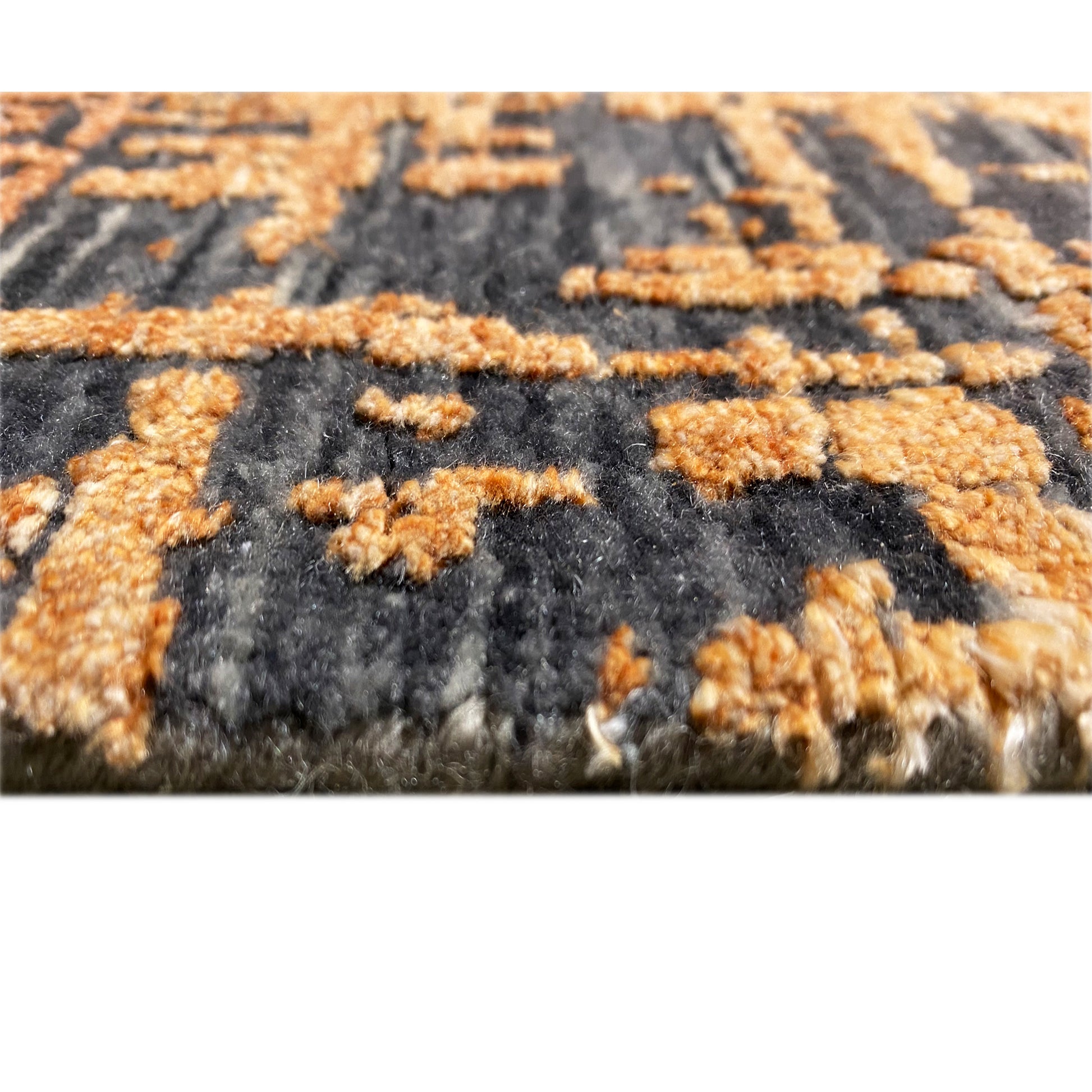 Enhance your interior with this hand-knotted designer rug, which makes a striking statement with its modern, abstract pattern in rich brown and blue tones. Made from a luxurious blend of wool and viscose, this rug (374x275 cm) not only offers a captivating look but also a pleasantly soft feel and exceptional durability. It creates a contemporary atmosphere and is a true statement piece for any living space.