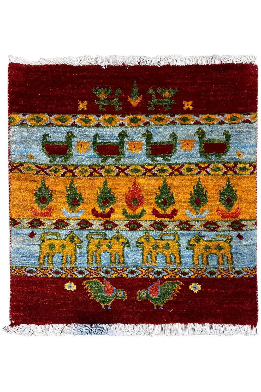 Gabbeh Lori carpets are distinctive, handwoven creations of the Lori tribes. These carpets are famous for their thick, plush texture and vibrant, often abstract patterns. Made from high-quality wool and natural dyes, Gabbeh Lori carpets feature bold colors and simple geometric patterns that convey a sense of rustic elegance and cultural authenticity.