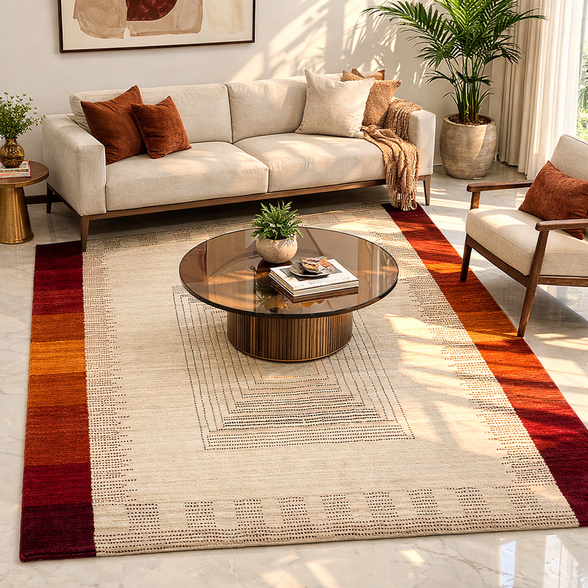 Dieser handgewebte Loom Luri Teppich aus hochwertiger Wolle überzeugt durch seine natürliche Eleganz und langlebige Qualität. Die harmonische Kombination aus Creme und warmen Rottönen verleiht jedem Raum eine stilvolle und gemütliche Atmosphäre und passt ideal zu modernen, minimalistischen und skandinavischen Wohnstilen. Das dezente geometrische Muster mit feinen Linien sorgt für eine ruhige, strukturierte Optik. Mit seiner Größe von 245x170 cm eignet sich der Teppich perfekt für Wohn- oder Schlafzimmer und bietet angenehmen Komfort sowie natürliche Wärme.