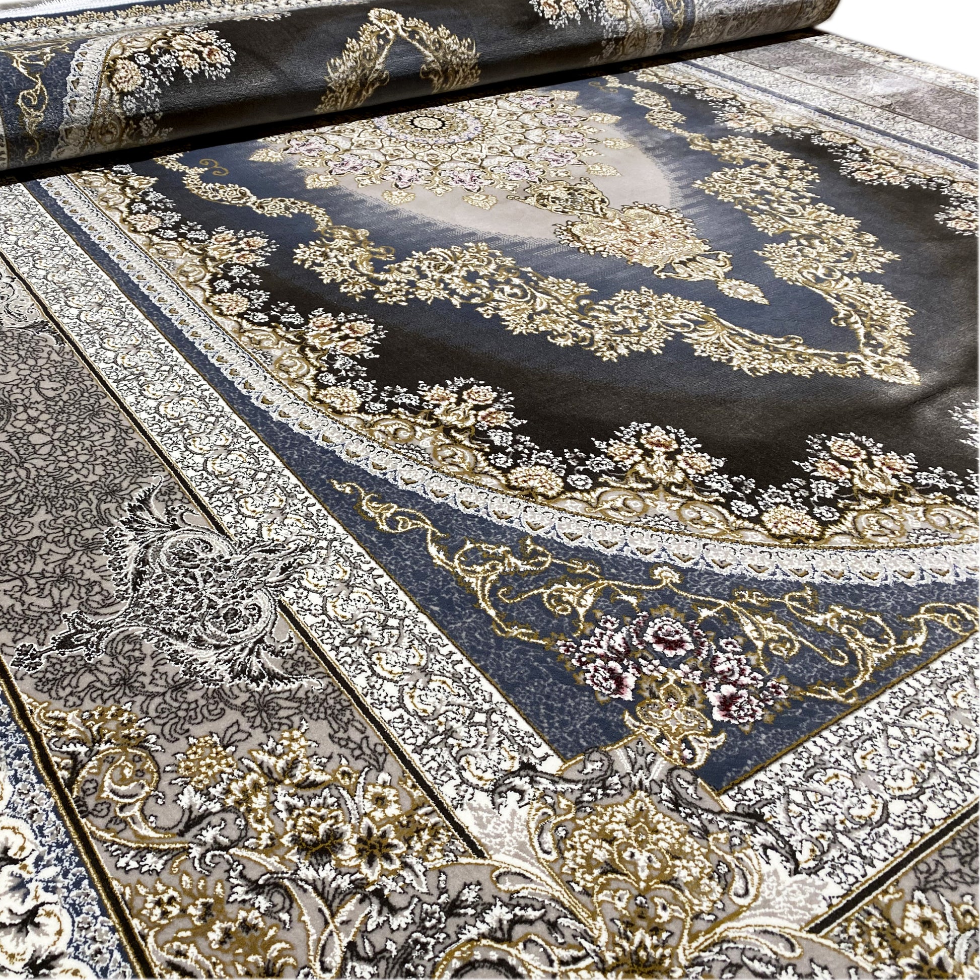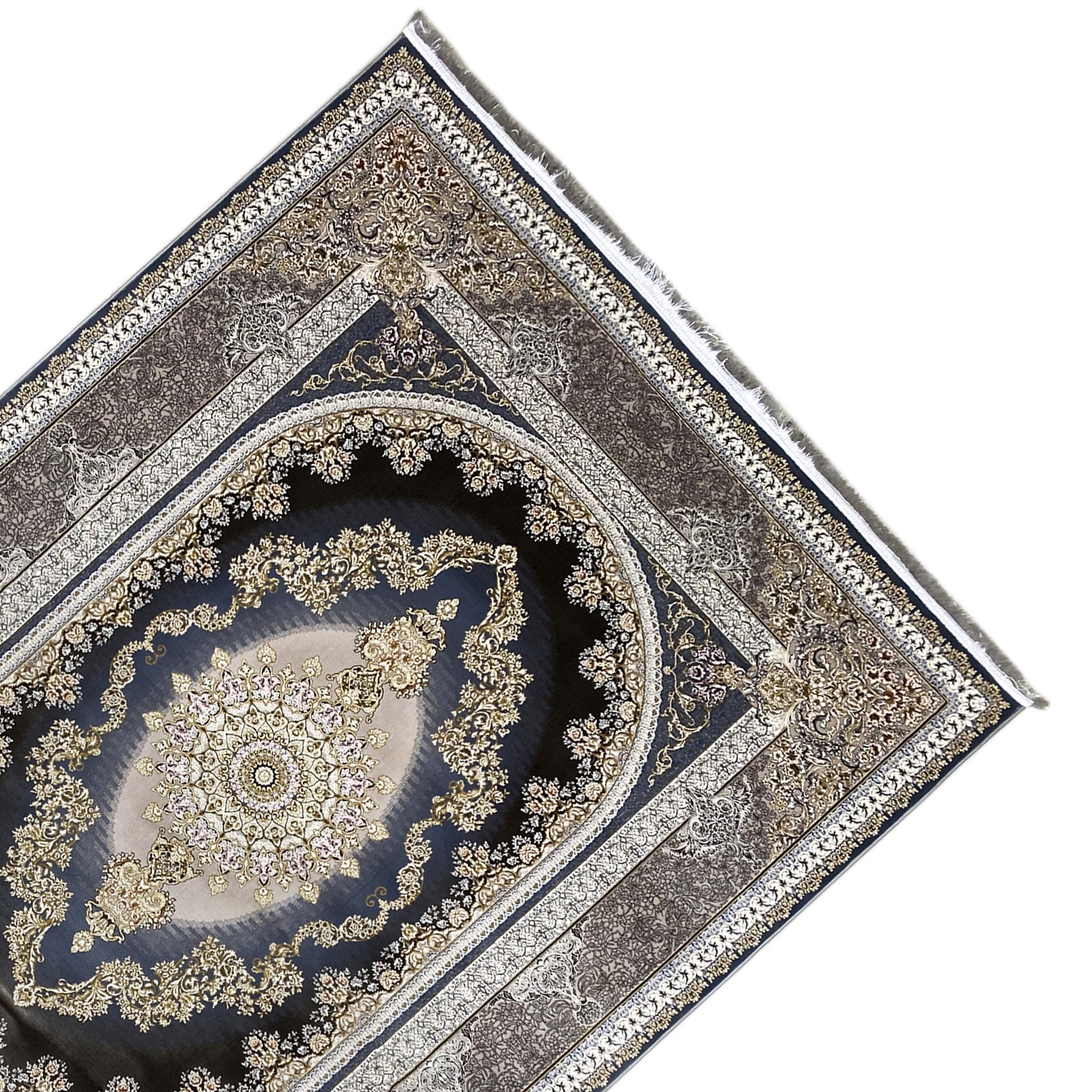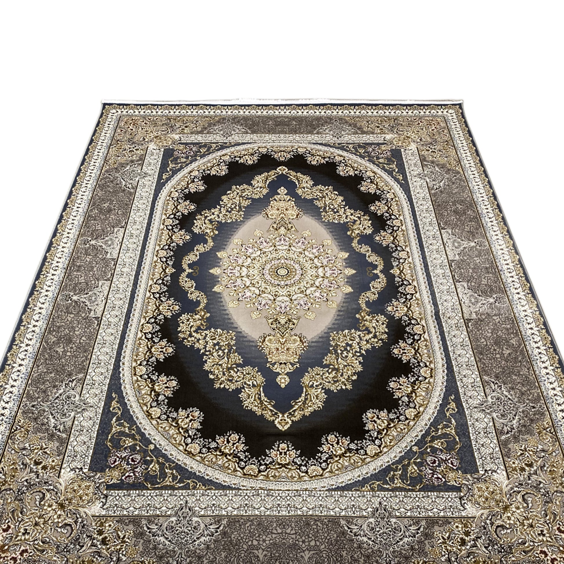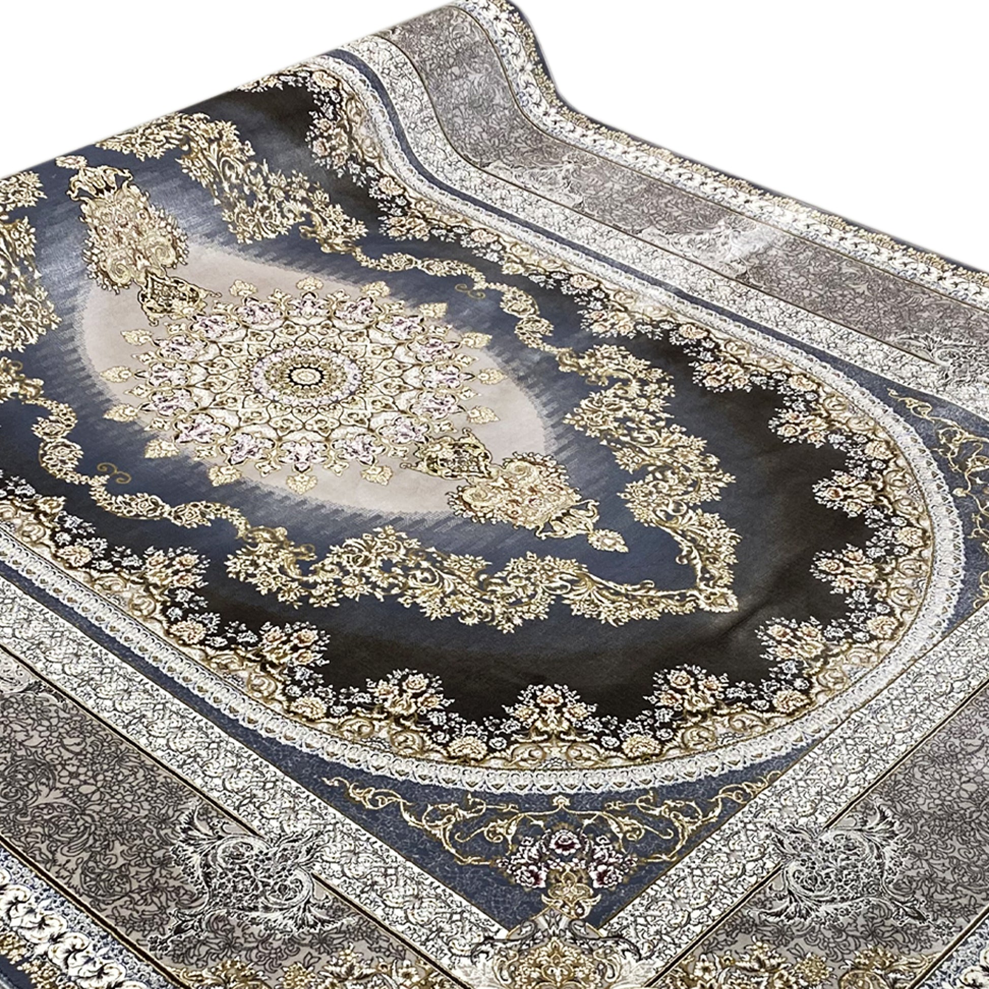Add a touch of opulent elegance to your home with the classic Midnight Opulence rug. Its striking oval medallion design features intricate patterns in shimmering gold and cream tones that stand out against a rich navy blue. The detailed gray border completes the luxurious overall look. Made from 100% heat-treated acrylic, this rug is soft, durable, and perfect for high-traffic areas. Its generous size of 170x240cm makes it an ideal statement piece for your living or dining room.