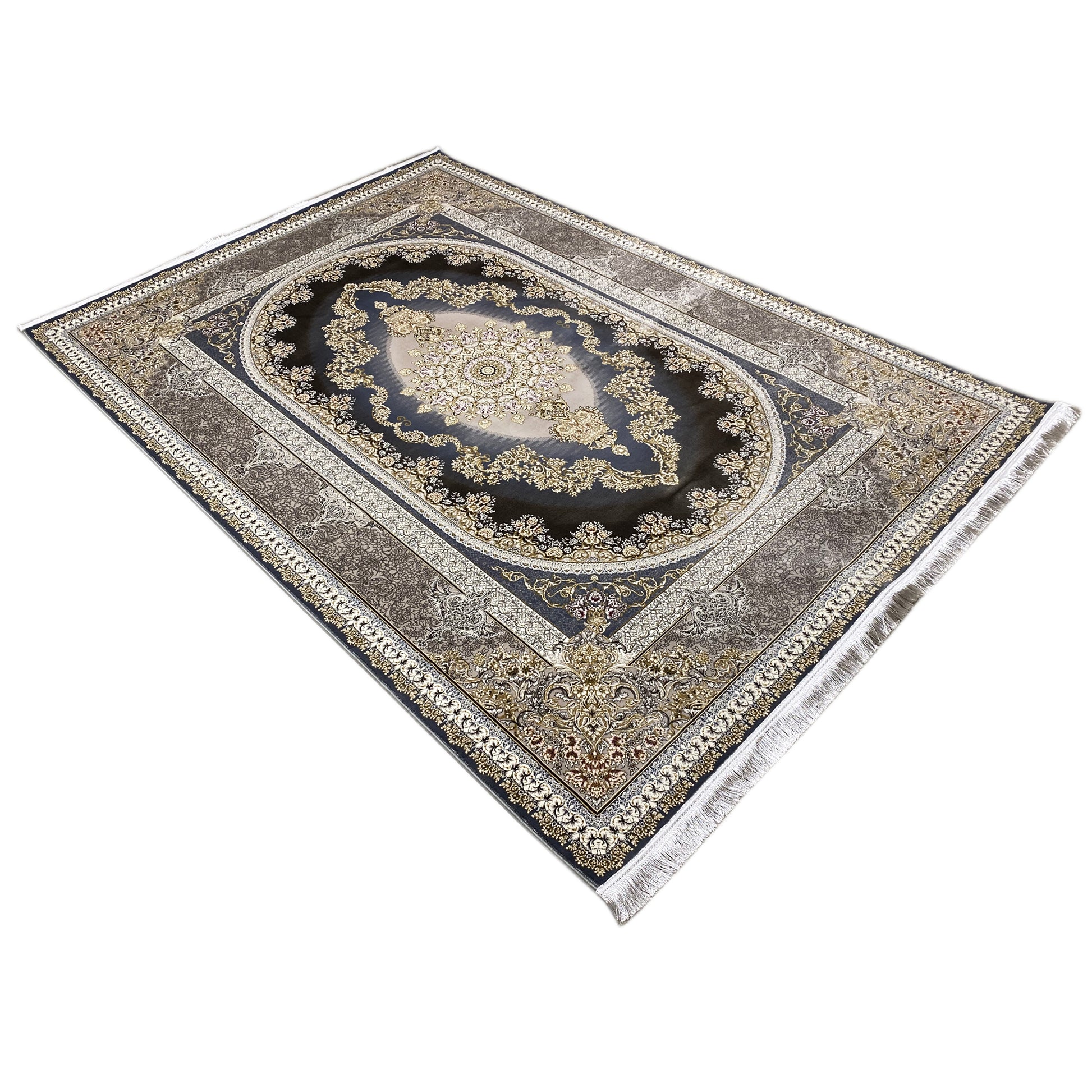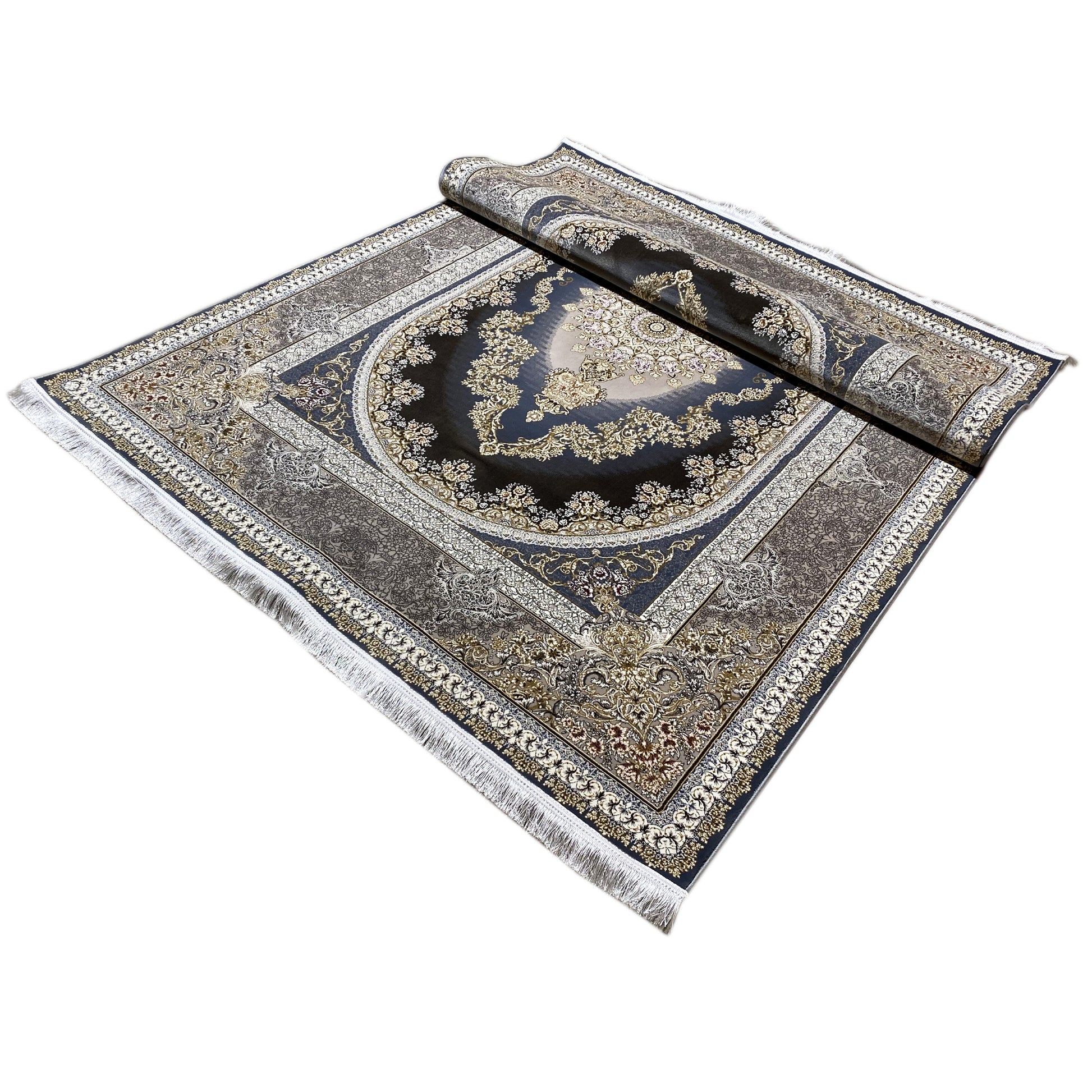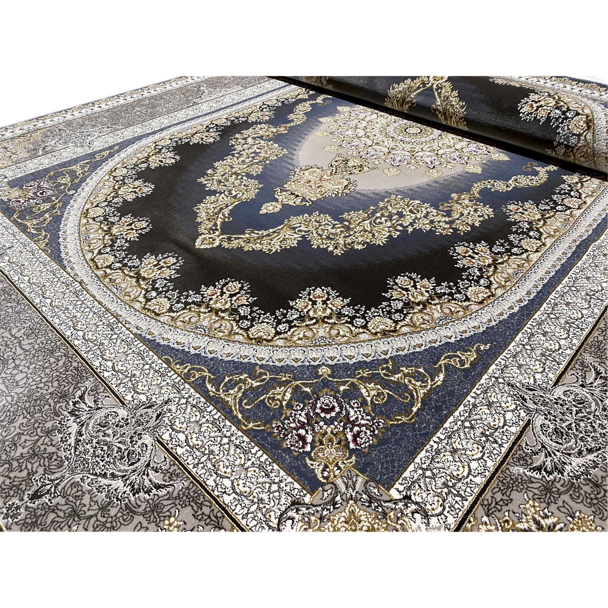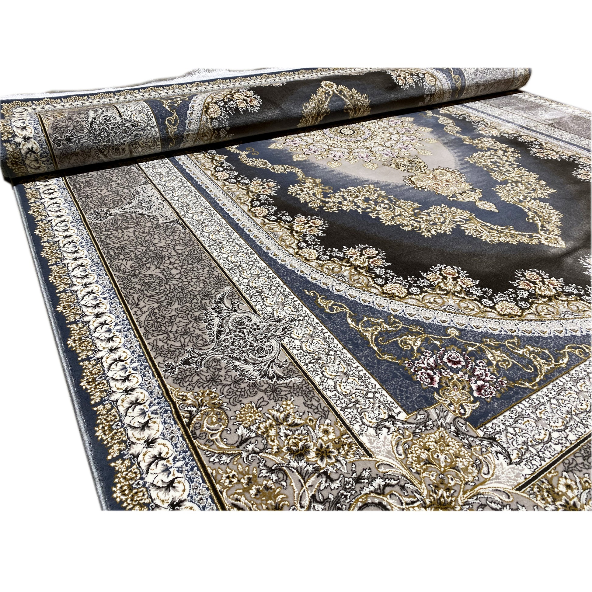 Add a touch of opulent elegance to your home with the classic Midnight Opulence rug. Its striking oval medallion design features intricate patterns in shimmering gold and cream tones that stand out against a rich navy blue. The detailed gray border completes the luxurious overall look. Made from 100% heat-treated acrylic, this rug is soft, durable, and perfect for high-traffic areas. Its generous size of 170x240cm makes it an ideal statement piece for your living or dining room.