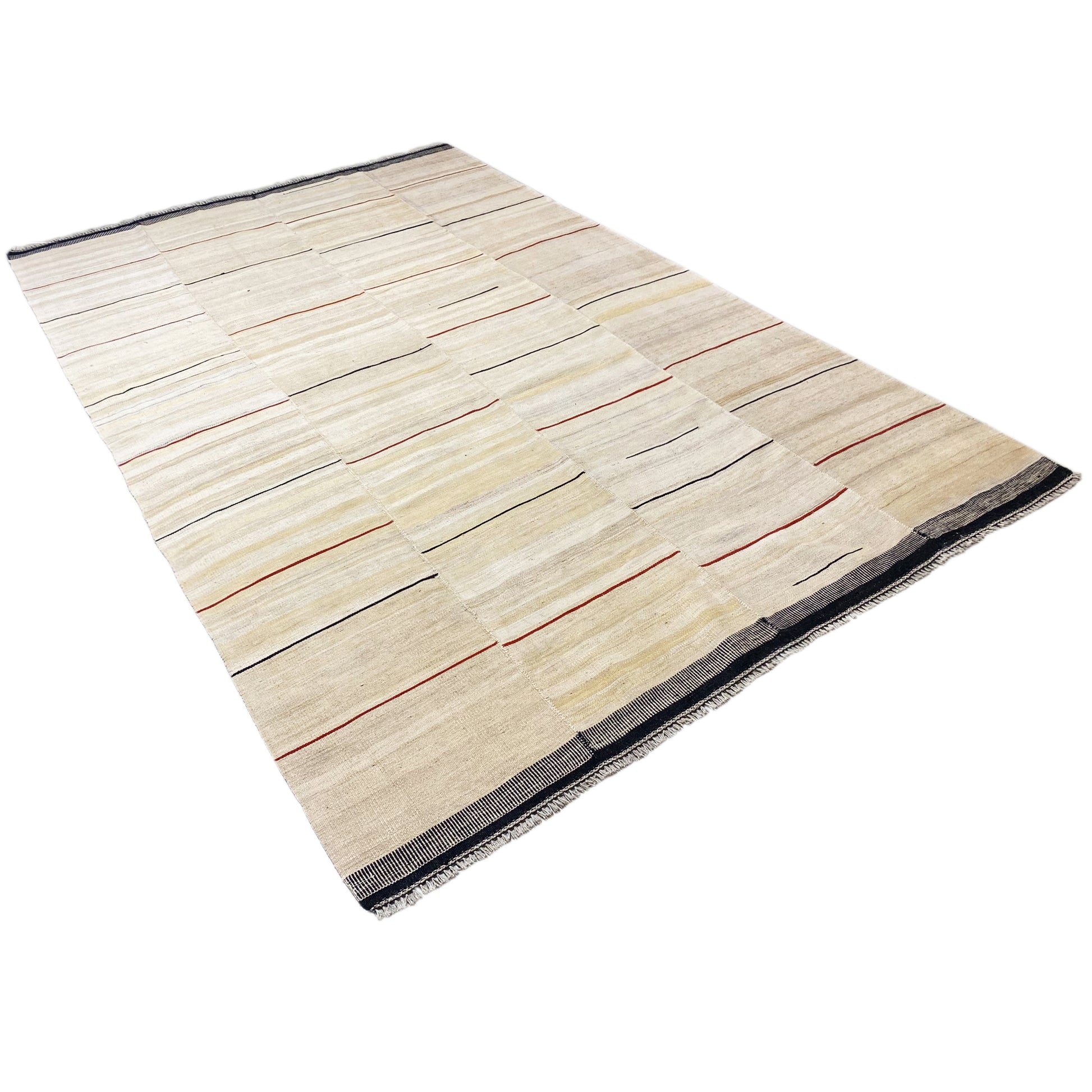 Enhance your home with this modern flatwoven kilim measuring 319x200 cm, featuring a refined Persian design. Expertly crafted in Persia from durable wool pile with a cotton warp, its subtle patterns and neutral tones effortlessly complement contemporary and minimalist decor styles. This versatile piece offers a unique blend of traditional craftsmanship and modern aesthetics, making it a perfect addition to any home seeking a touch of warmth and refined simplicity.