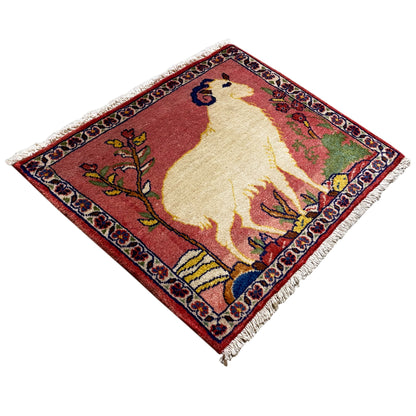 This exquisite, hand-knotted Poshti rug is a colorful testament to the nomadic weaving art of the southern Iranian "Tork" tribal group, known for their distinctive "Torkey" rugs. Measuring 54x48 cm, this piece made of wool and cotton features a warm red background that presents a lively all-over pattern of stylized stars and geometric shapes in a variety of bright, vibrant colors. Perfect as an accent rug, it adds a touch of authentic tradition and dynamic elegance to any small room or wall area.