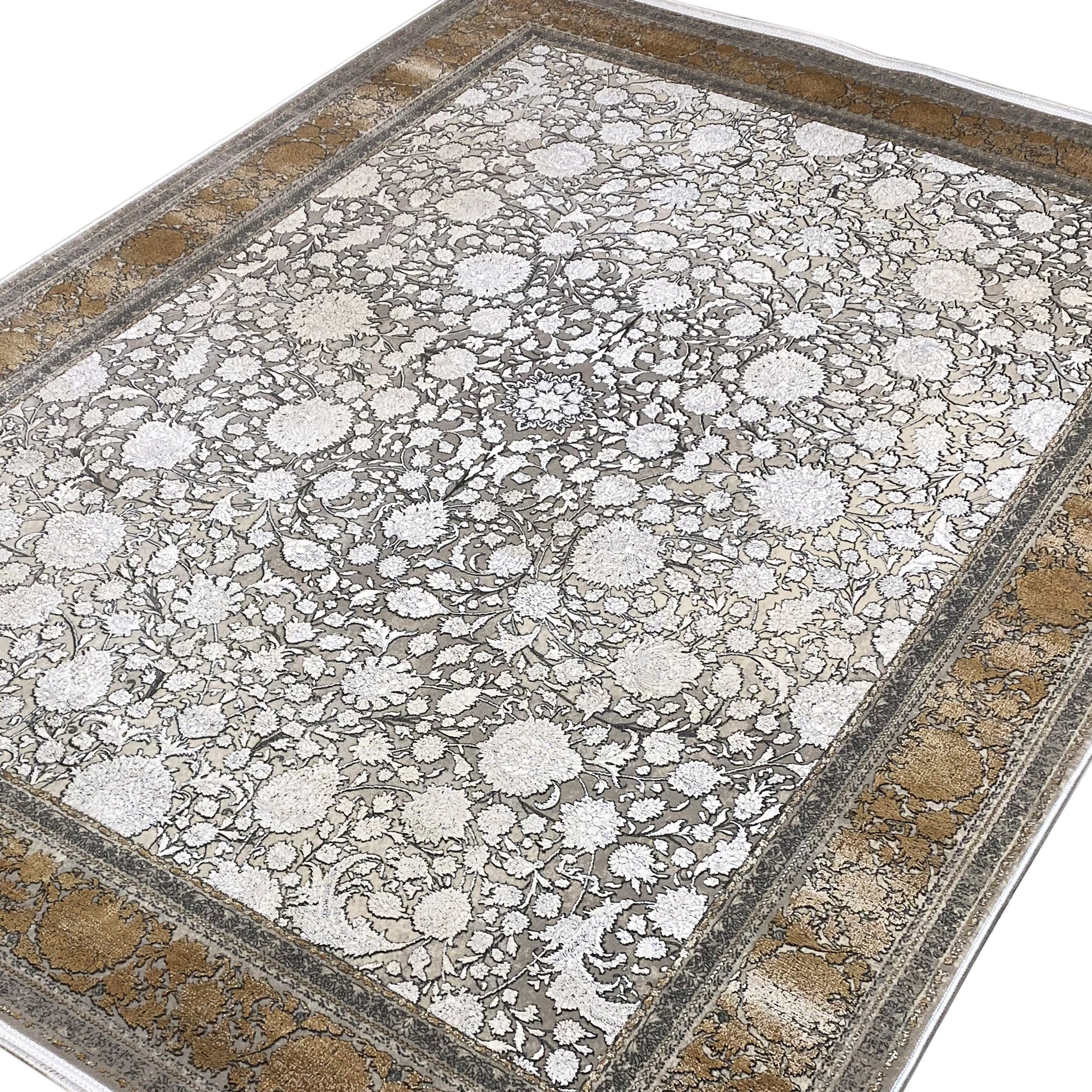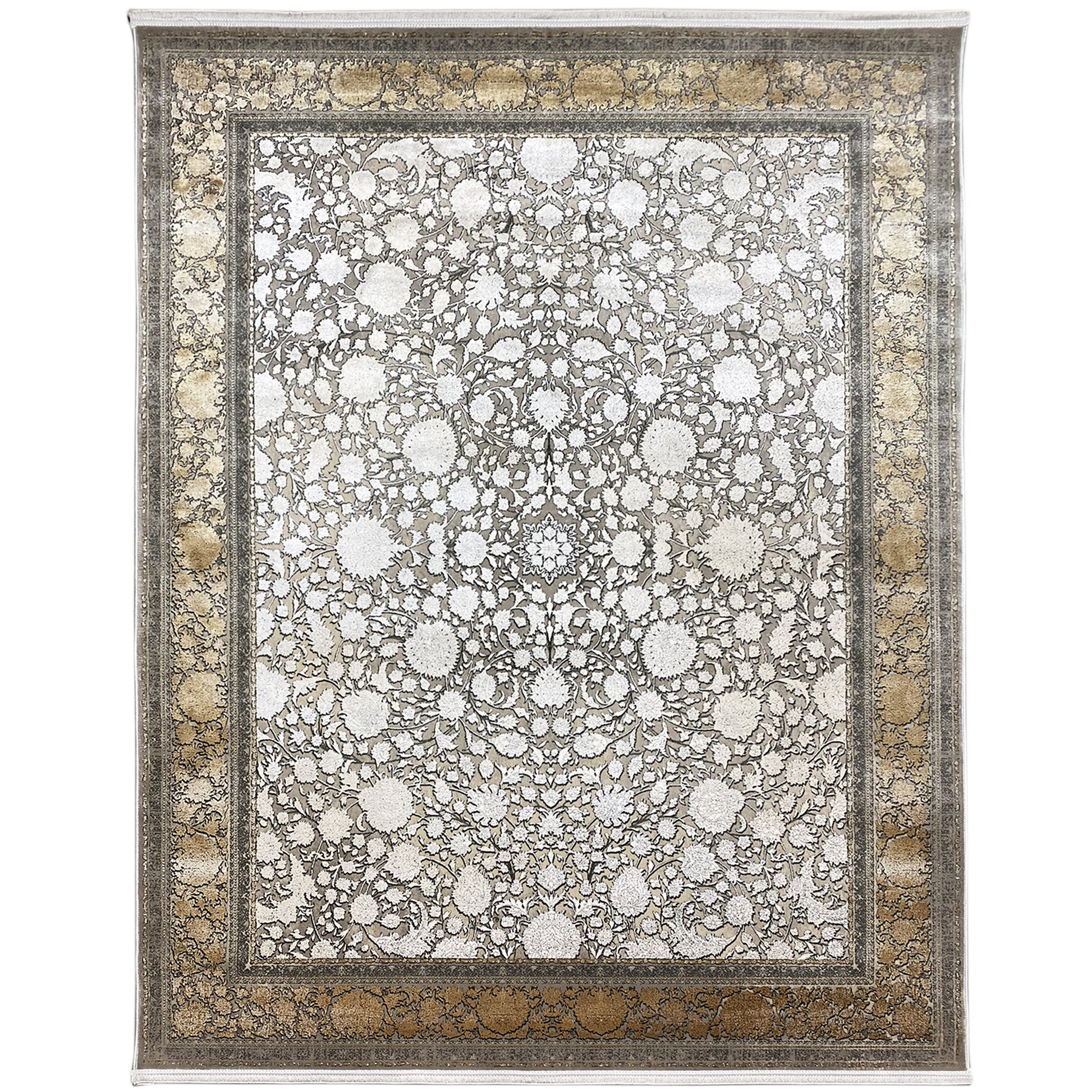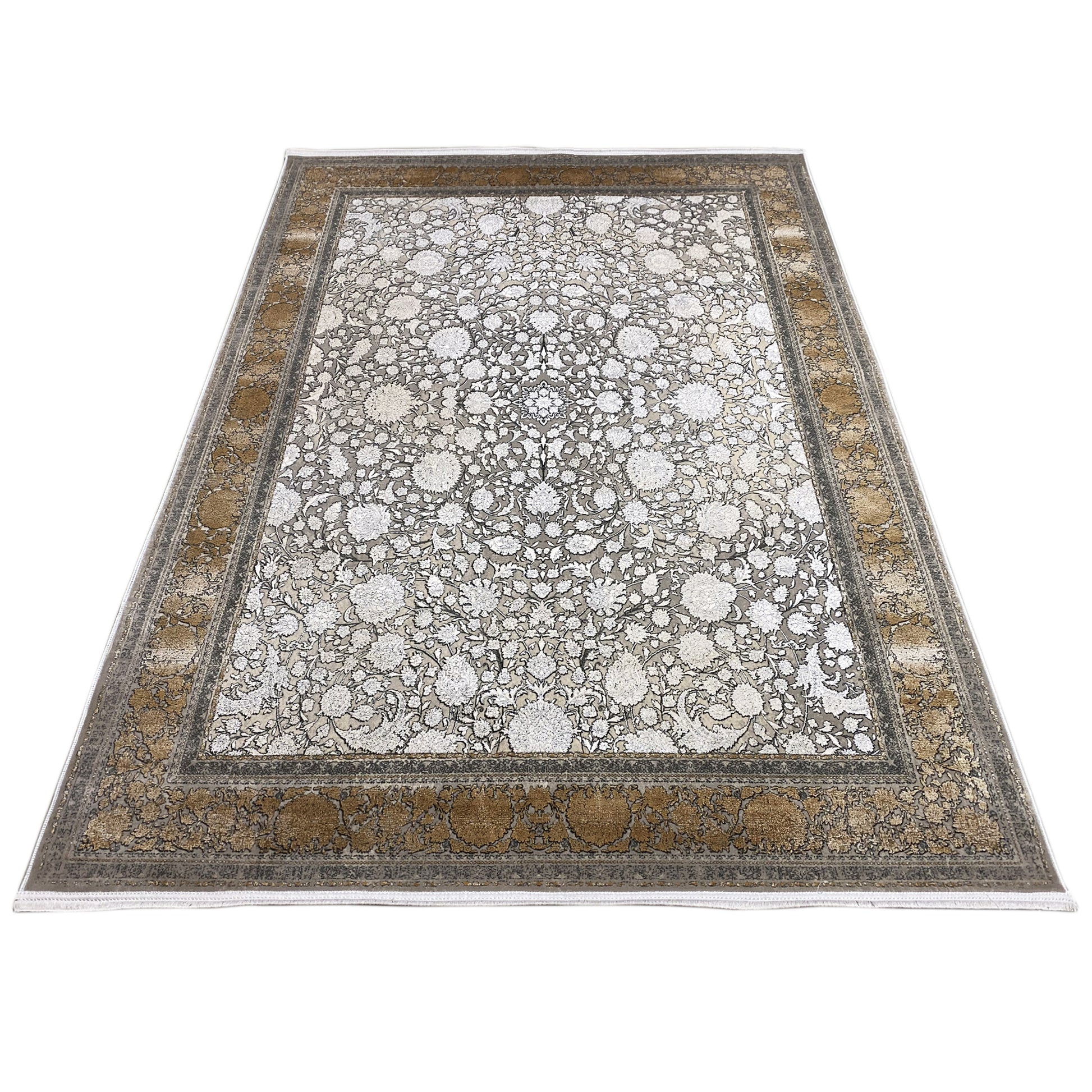Add a touch of timeless elegance to your home with this beautiful classic rug. Its stunning continuous floral pattern in shimmering silver and gold tones creates a sense of luxury and depth. Made from 100% heat-treated acrylic, this soft and durable rug is perfect for high-traffic areas, combining exquisite style with modern resilience. The generous size of 170x240cm is ideal for adding a refined focal point to your living, bedroom, or dining room.